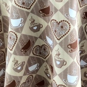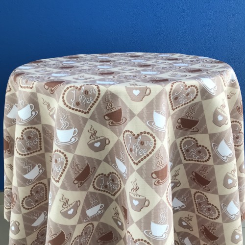 Ubrus hnědobéžový kávové šálky a srdce TC19-3